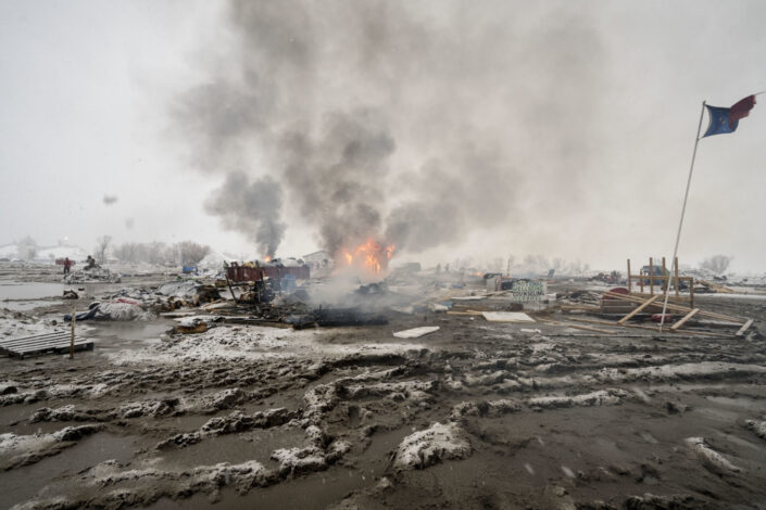 Ο Larry Towell είναι μάρτυρας της συναισθηματικής φόρτισης και της τελευταίας αντίστασης καθώς και οι καταυλισμοί διαμαρτυρίας κλείνουν και οι διαμαρτυρίες κατά του αγωγού πρόσβασης στη Βόρεια Ντακότα τελειώνουν.